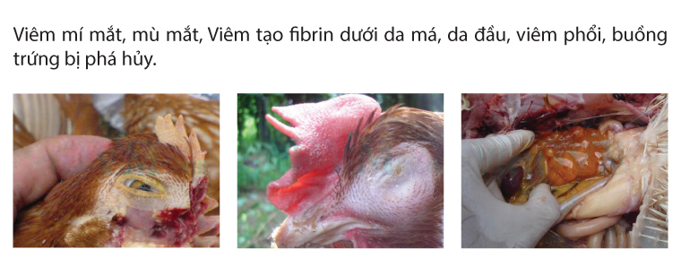 - Trên gà đẻ: Buồng trứng vỡ, teo, gây biến dạng, vỏ trứng mỏng, nhạt màu, dị dạng, tỷ lệ đẻ giảm 5 - 30%.
